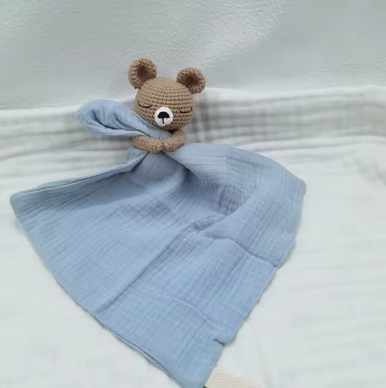 • Compagnon rassurant au quotidien : Sa texture douce en gaze de coton et sa petite tête d’ourson facile à attraper sont parfaitement adaptées aux petites mains. Léger et souple, il accompagne bébé partout — au lit, en poussette ou lors des déplacements — pour l’apaiser à tout moment.